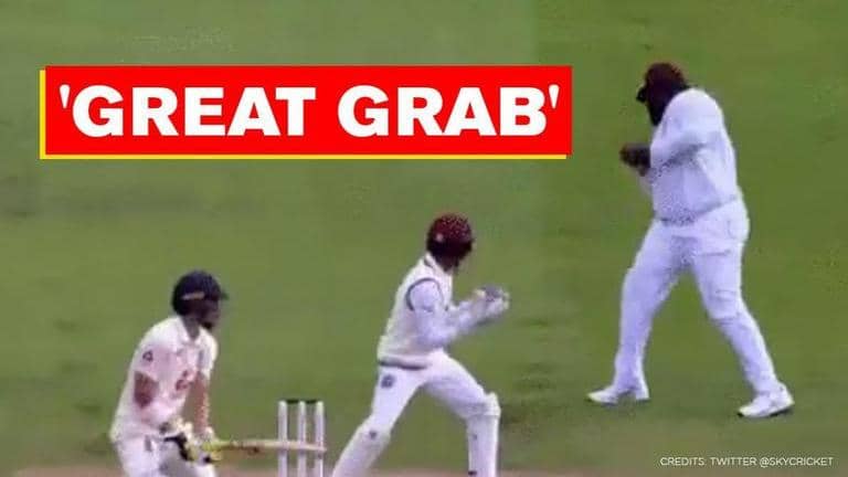 Rahkeem Cornwall made his presence felt by taking a brilliant catch in the series-deciding third and final Test match between England and West Indies at the Old Trafford in Manchester on Friday. Cornwall who is 6 feet and 8 inches tall and bulky as well made a difficult catch look very easy to get rid of opener Rory Burns who was looking dangerous in the middle.
