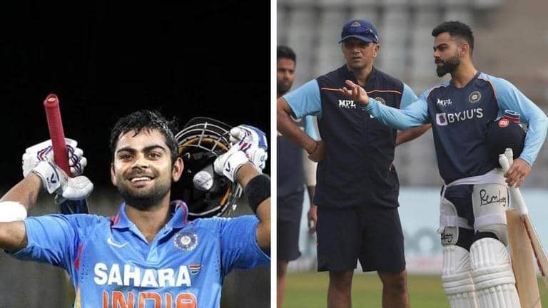 Virat Kohli in 2012 (L) and Kohli and Rahul Dravid in 2022 (R) | Image: AP/BCCI) | Image: self