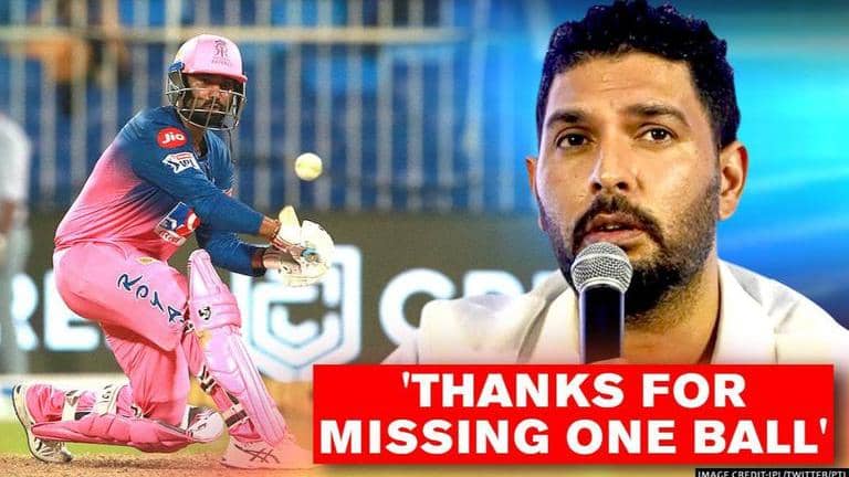 As Rahul Tewatia hammered Sheldon Cottrell for five sixes in an over, the Rajasthan all-rounder almost nailed the perfect over by smacking six sixes in an over. Wrecking complete carnage at a crucial point, Tewatia not only got his team back into the contest, but also scared former Indian cricketer Yuvraj Singh as he was on the verge of nailing his perfect record of 6 sixes in an over. The former Indian all-rounder humorously responded to Tewatia's blitzkrieg as he thanked him for missing one ball.