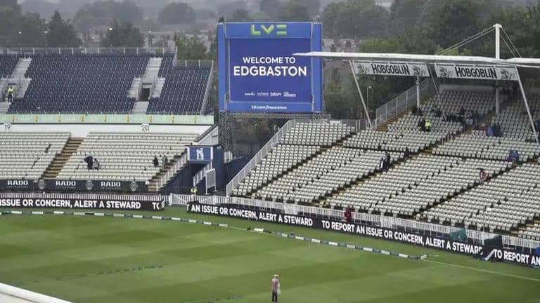 Players will take an early lunch at 12:30 p.m. local time. The test won’t start before 1:10 p.m. at the earliest. The covers are still on at the Birmingham ground but the rain has eased and the weather is forecast to improve in the afternoon.