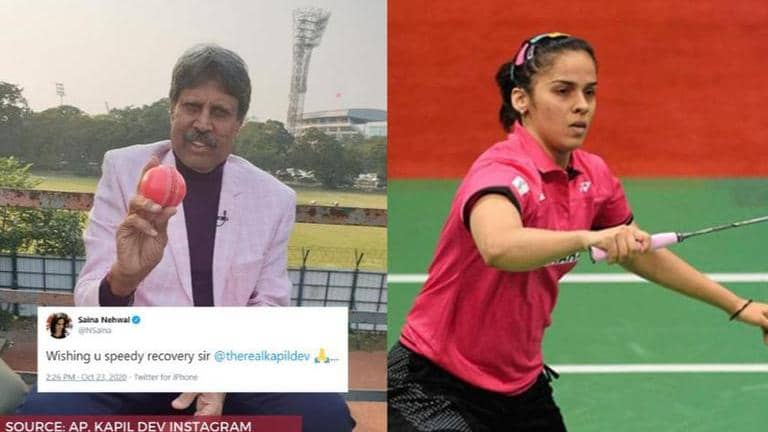 Indian Olympic shuttler Saina Nehwal tweeted about Indian cricket legend Kapil Dev's health and wishes for his recovery after he suffered a heart attack.