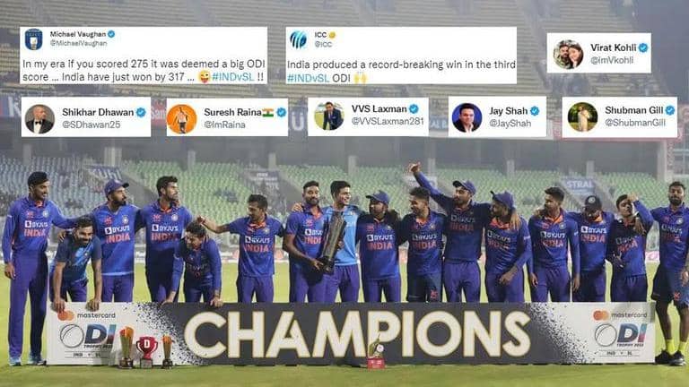 While India made many records by defeating Sri Lanka in the third ODI, cricketing world came together to congratulate team India for the emphatic win.