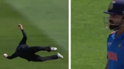 Kohli cut the ball, and it seemed it was a sure shot boundary because of the power behind the hit, but it found Phillips on its way. Kohli was left stunned as he could not believe the acrobatic effort from the New Zealander. Here is the clip of the stunning catch from Phillips.