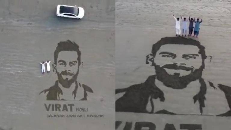 Pakistan fans create huge Virat Kohli sand art in Balochistan