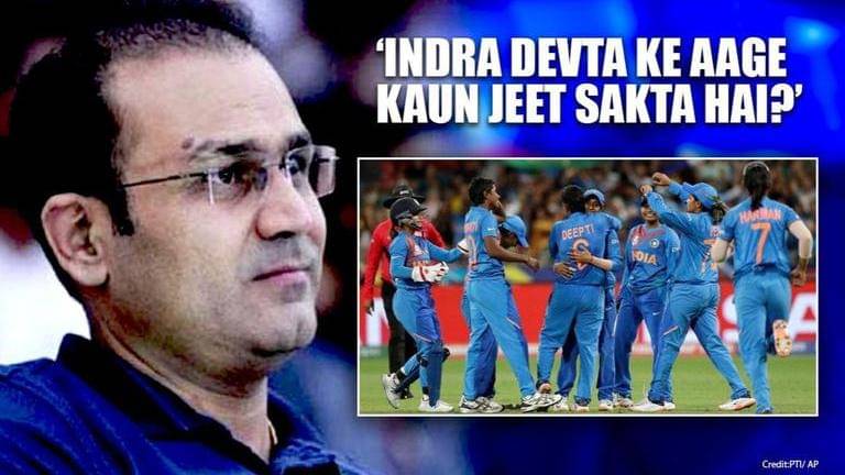 Taking to the micro-blogging site, Virender Sehwag wrote that he would have loved seeing the semi-finals but Indra Devta ke aage kaun jeet sakta hai? (Who can win against Lord Indra?). The former Indian vice-captain also wrote that hard work always pays off and the Indian eves got the reward for winning all their matches in the group stage. Viru concluded by congratulating the Harmanpreet Kaur & Co. and wished them glory for the summit clash on Sunday.