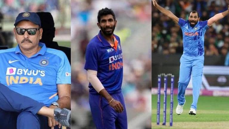 Ravi Shastri, Jasprit Bumrah and Mohammed Shami