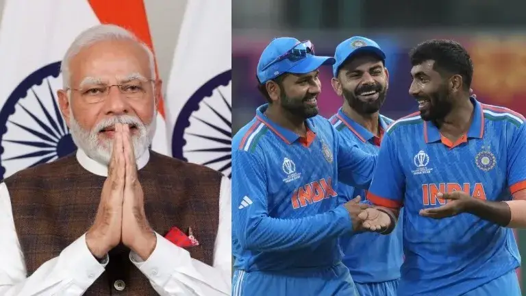 PM Narendra Modi (left) & the Indian Cricket Team (right)