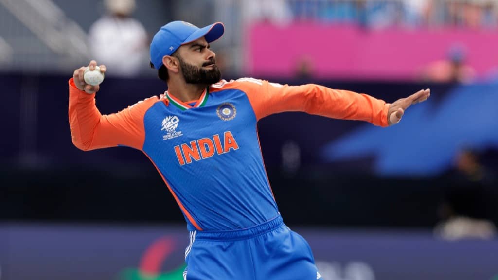 Virat Kohli throws the ball after fielding it during the ICC Men's T20 World Cup cricket match between United States and India at the Nassau County International Cricket Stadium | Image: AP