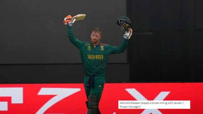 South African batter Heinrich Klaasen received a lot of praise from social media users after his record-breaking ton during the ENG vs SA CWC 2023 match.