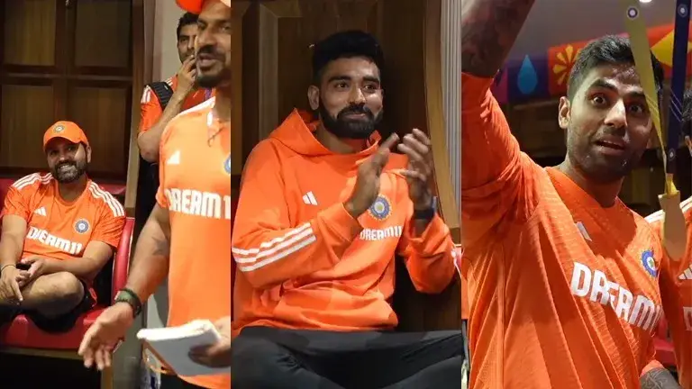 Amid cheers, the dressing room witnessed images of Ravindra Jadeja's crucial match-winning catches during a ceremony. Last time's winner, Suryakumar Yadav was asked to present the medal to Jadeja. Suryakumar showered Jadeja with massive praise, saying, "Cheete ki chal, baaz ki nazar aur Royal Navghan ki fielding se koi nahi bach sakta hai (Speed of Cheetah, Vision of Hawk, And Royal Navghan’s fielding nobody can escape)."