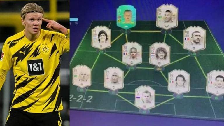 The Erling Haaland FUT team was leaked online by Reddit user Exact-Ad-744, who shared a screenshot of the Norweigian's ridiculously OP (overpowered) team. The team used a 4-2-2-2 attacking formation with Haaland's 99-rated card and Ronaldo Nazario's 94-rated icon card starting upfront. Diego Maradona and Eric Cantona played behind the deadly strike duo, with Patrick Viera and Ruud Gullit shielding the defence. The back five consisted of legends like Lev Yashin (GK), Roberto Carlos, Paulo Maldini, Gianluca Zambrotta and Sol Campbell.