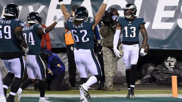 Philadelphia turned that turnover into a score as Wentz tossed a 2-yard TD pass to Reagor for a 7-3 lead. Reagor, the 21st overall pick, missed the previous five games following thumb surgery. A 32-yard pass to Fulgham set up the score.