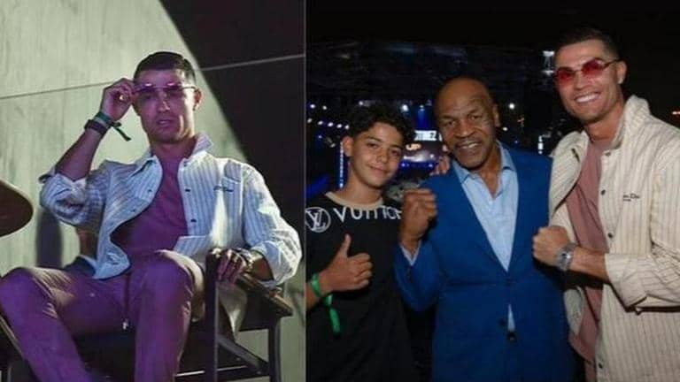 Ronaldo was seen enjoying his time at the arena with his son Ronaldo Jr. and was also spotted sharing the frame with boxing legend Mike Tyson. British boxer Derek Chisora also shared a video on his Instagram stories, where the Al Nassr football was seen getting candid. Here’s a look at the best pictures of Cristiano Ronaldo from the high-octane boxing event.