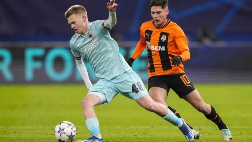 Arthur Vermeeren runs with the ball next to Heorhiy Sudakov during the Champions League group H soccer match between Shakhtar Donetsk and Antwerp at Volksparkstadion | Image: