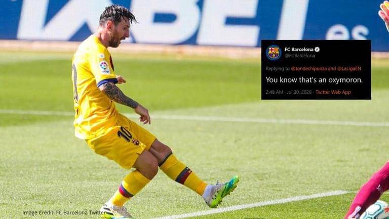 Barcelona's official Twitter account hit back at a social media troll after he took a dig at Blaugrana captain Lionel Messi's performances this season.