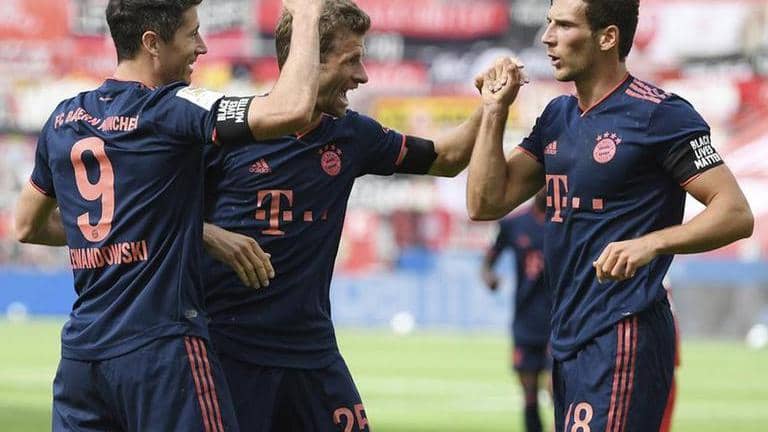 Wearing ”Black Lives Matter” armbands, Bayern Munich came from a goal down to beat Bayer Leverkusen 4-2 and take another step towards a record-extending eighth consecutive Bundesliga title on Saturday.