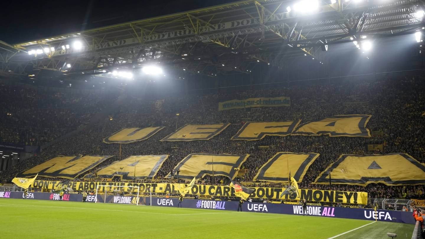 Borussia Dortmund fans have made their opposition to Champions League reforms clear with a huge tifo blasting European soccer’s governing body UEFA.