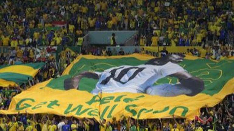 Brazilian fans who gathered before the match against Cameroon also had Pelé in mind, singing songs about him and sending him well-wishes.