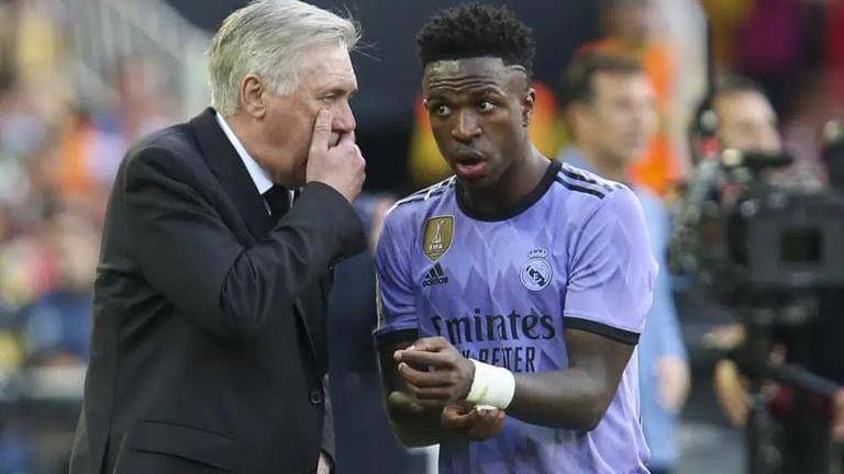 Real Madrid coach Carlo Ancelotti considered replacing Vinícius after he said fans at the Mestalla Stadium chanted “monkey” toward him. He said Vinícius initially didn’t want to continue playing.