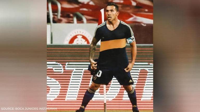 When Carlos Tevez scored in the 63rd minute of Boca Juniors' Copa Libertadores Round of 16 first-leg clash against Internacional, he had an epic tribute for Diego Maradona. The three-time Premier League champion unveiled the iconic 1981 Boca Juniors kit under their current one with Maradona's No.10 imprinted on it. Tevez, who also captains Boca Juniors, took off his armband which had Maradona's birth year and the phrase 'Rey de Reyes' - or 'King of Kings' - and kissed it.