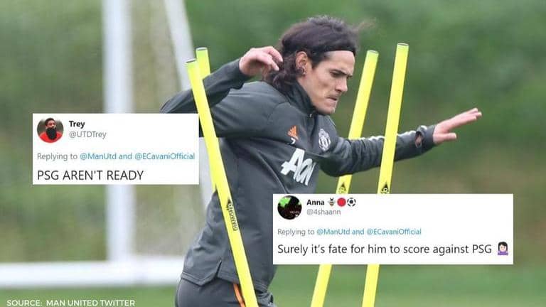 Cavani trains with Man United teammates ahead of PSG clash, fans excited to see El Matador