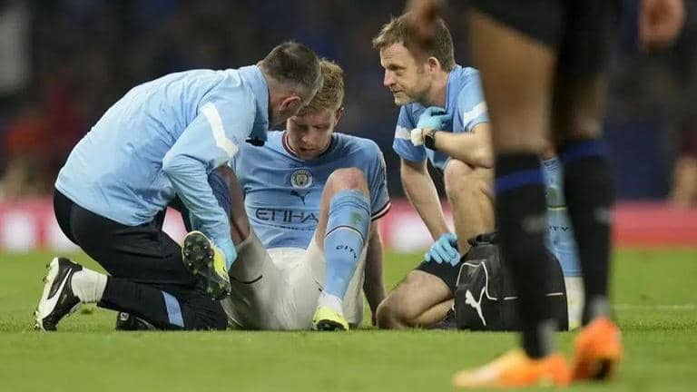 Manchester City playmaker Kevin De Bruyne had to be substituted with an injury during the first half of the Champions League final against Inter Milan, making it the second time in three seasons he's had to come off early in the biggest club game in soccer.