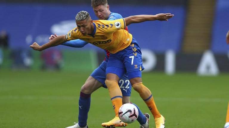 Everton won its third straight match to open the English Premier League by beating Crystal Palace 2-1 thanks to a contentiously awarded penalty converted by Richarlison on Saturday.
