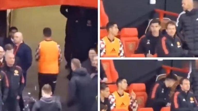 Footage from a new video that has now emerged seems to show Cristiano Ronaldo having a conversation with Manchester United coach Erik ten Hag. It seems that the Dutch manager is indicating to the Portuguese international to come on as a substitute when CR7 declines to oblige.