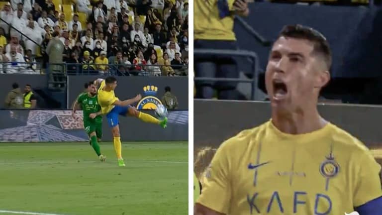 Cristiano Ronaldo scores incredible weak foot volley goal during Al-Nassr vs Al-Khaleej