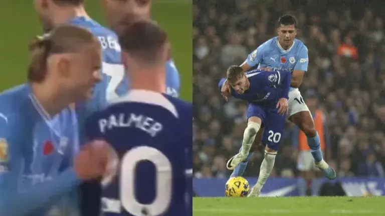 There was a moment when Haaland shoved away his former teammate Palmer during the match. Pep Guardiola's side was awarded a freekick on the edge of the area and the likes of Bernardo Silva and Jack Grealish was seen discussing their tactics in a hurdle. Palmer tried to listen in to the conversation but Haaland was seen pushing the player away from that place.