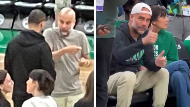 Pep Guardiola, the manager of Manchester City, was caught having an exchange with the Boston Celtics coach prior to Game 1 of the NBA Final. Guardiola had been in the USA since Manchester City won the Premier League for the first time in history four times in a row in 2023–24.