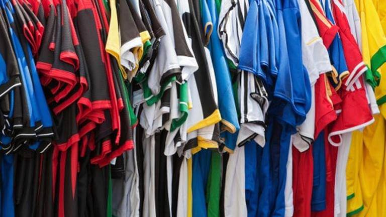 Hundreds of football fans jostle as they rummage through piles of jerseys, looking for the shirt number of their favourite players at Kolkata’s Maidan Market.