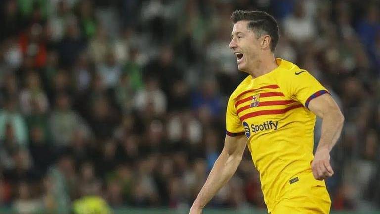 Lewandowski opened the scoring in the 20th minute and added Barcelona's third goal in the 66th to take his league-leading tally to 17 goals in his first season in Spain.