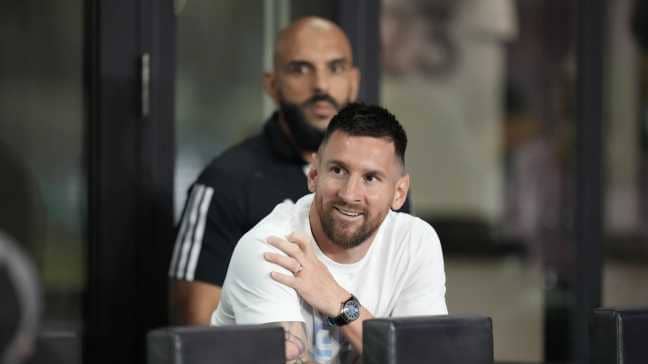 Lionel Messi was seen dressed in a white T-shirt at the Inter Miami bench area with his teammates after returning from Peru earlier in the day.