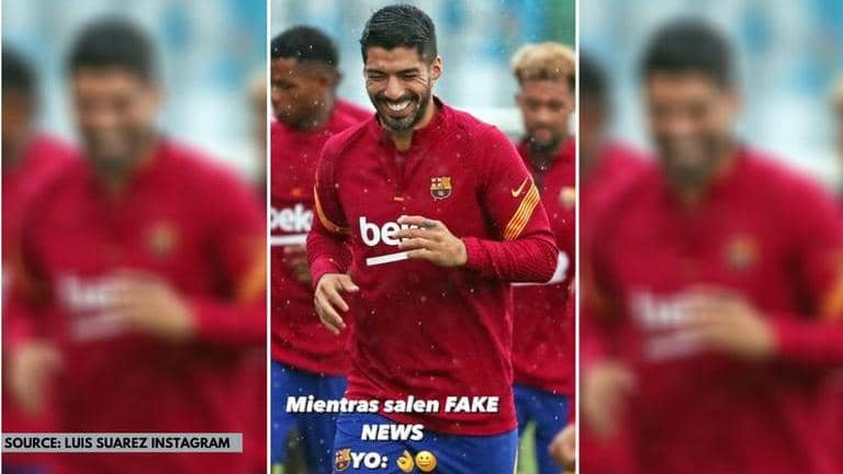 Amid the Suarez transfer talks, the striker took to Instagram in which he posted a picture of himself in Barcelona training. The picture is accompanied by a caption that, when translated into English, read as, "While fake news is coming out." This was further accompanied by a smiling emoji.