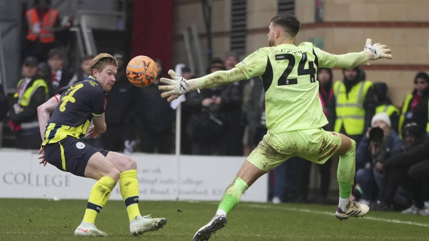 Rico Lewis’ effort deflected of Khusanov in the 56th to level the match and De Bruyne flicked a shot past Josh Keeley in the 79th to seal victory.
