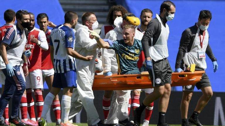 Arsenal was angry because Maupay had leaned into Leno as the goalkeeper jumped to collect the ball. Leno landed awkwardly on his right leg and collapsed to the ground, his howls of pain clearly audible in the empty Amex Stadium.