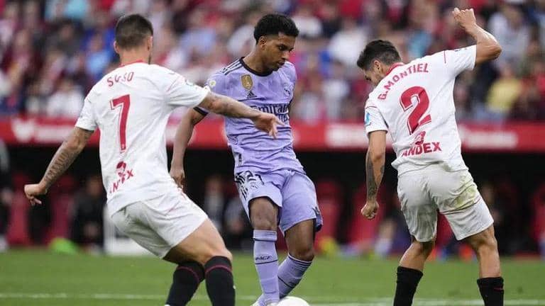 Rodrygo scored twice to give Real Madrid a 2-1 win at Sevilla in the Spanish league on Saturday.