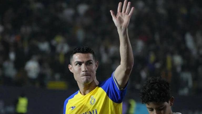 Cristiano Ronaldo reacts during his official unveiling as a new member of Al Nassr; Image: AP | Image: self