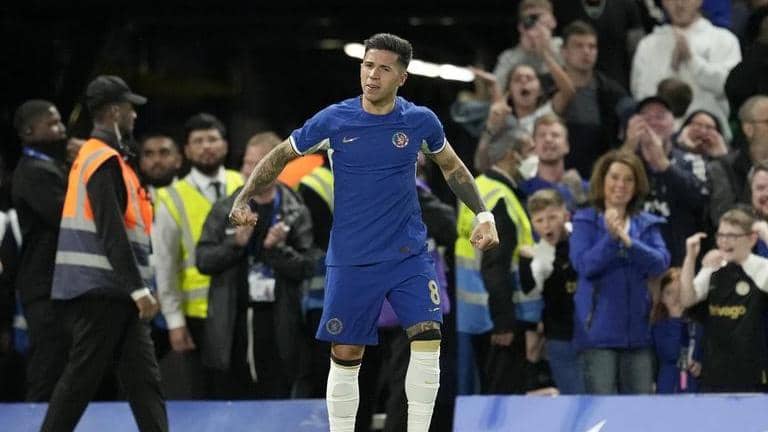 Enzo Fernandez celebrates after scoring a goal during the English League Cup; Image: AP | Image: self