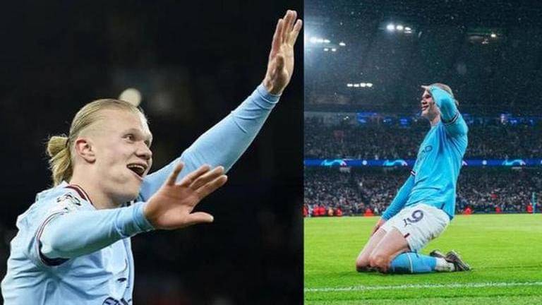 Watch: Erling Haaland strikes 5 goals for Man City, scripts UCL history by passing Mbappe
