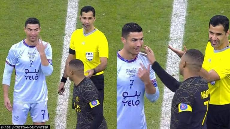 Watch Kylian Mbappe and Cristiano Ronaldo sharing a wholesome moment on the field as Mbappe checks on Ronaldo's bruises below the eye due to a collision.