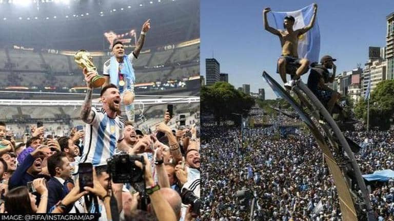 In the viral video, thousands of fans can be seen gathering at the Obelisk in Buenos Aires with national flags and cardboard cutouts of their hero Lionel Messi. It is pertinent to mention that Messi led the team from the front during the high-octane finale against France and made notable contributions.