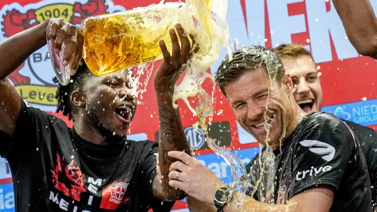 Bayer Leverkusen shared a video on their Instagram handle in which Bayer Leverkusen players sabotaged Xabi Alonso's press conference and drowned him in Beer as they celebrated their Meisterschale in style.