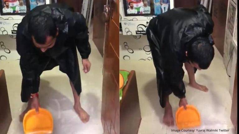 Mumbai-based ex-hockey star Yuvraj Walmiki tries to drain water out of flooded home: Watch