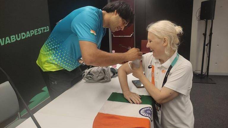 Due to respect, Neeraj Chopra declines a Hungarian woman's request to sign the Indian flag