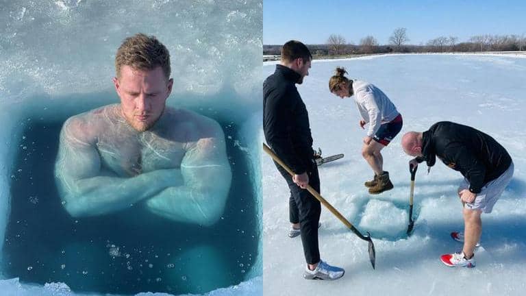 JJ Watt and his brothers devised a unique recovery plan as they prepare themselves for the new season, making their own version of an ice bath. After their workout, the trio took a chainsaw to the frozen lake in their backyard to try to cut out space for an ice bath. JJ wrote that they originally planned to use a chainsaw to create their recovery bath, but when the chainsaw didn't work they had to improvise and saw the ice out themselves. The trio posted pictures of themselves acing the ice bath, much to the surprise and shock of the netizens.