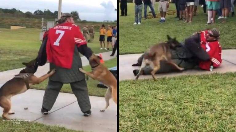 Located near Fort Pierce, Florida, the National Navy SEAL Museum is an independent, nonprofit organisation that is not run by the military. The video that went viral on social media this past weekend is from a fundraiser event in 2019. The footage shows four dogs showcasing their deadly nature by attacking a man wearing a Colin Kaepernick jersey. The second piece of footage showed the dogs taking the man down, who can be heard saying, "Oh man, I will stand," which was a jibe at Kaepernick's protests during the 2016 NFL season.