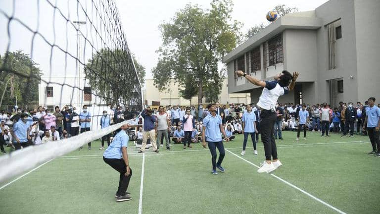 Neeraj Chopra enjoys archery, volleyball with school kids in Gujarat's Ahmedabad | WATCH
