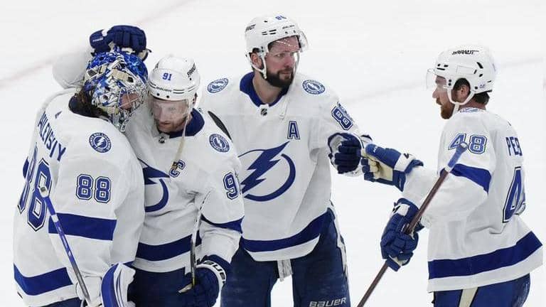 Nikita Kucherov and Corey Perry each had a goal and two assists, and Anthony Cirelli and Ross Colton finished with a goal and an assist for Tampa Bay. Pierre-Edouard Bellemare also scored for the Lightning, who got four goals on the power play. Andrei Vasilevskiy made 28 saves in his 100th playoff start.